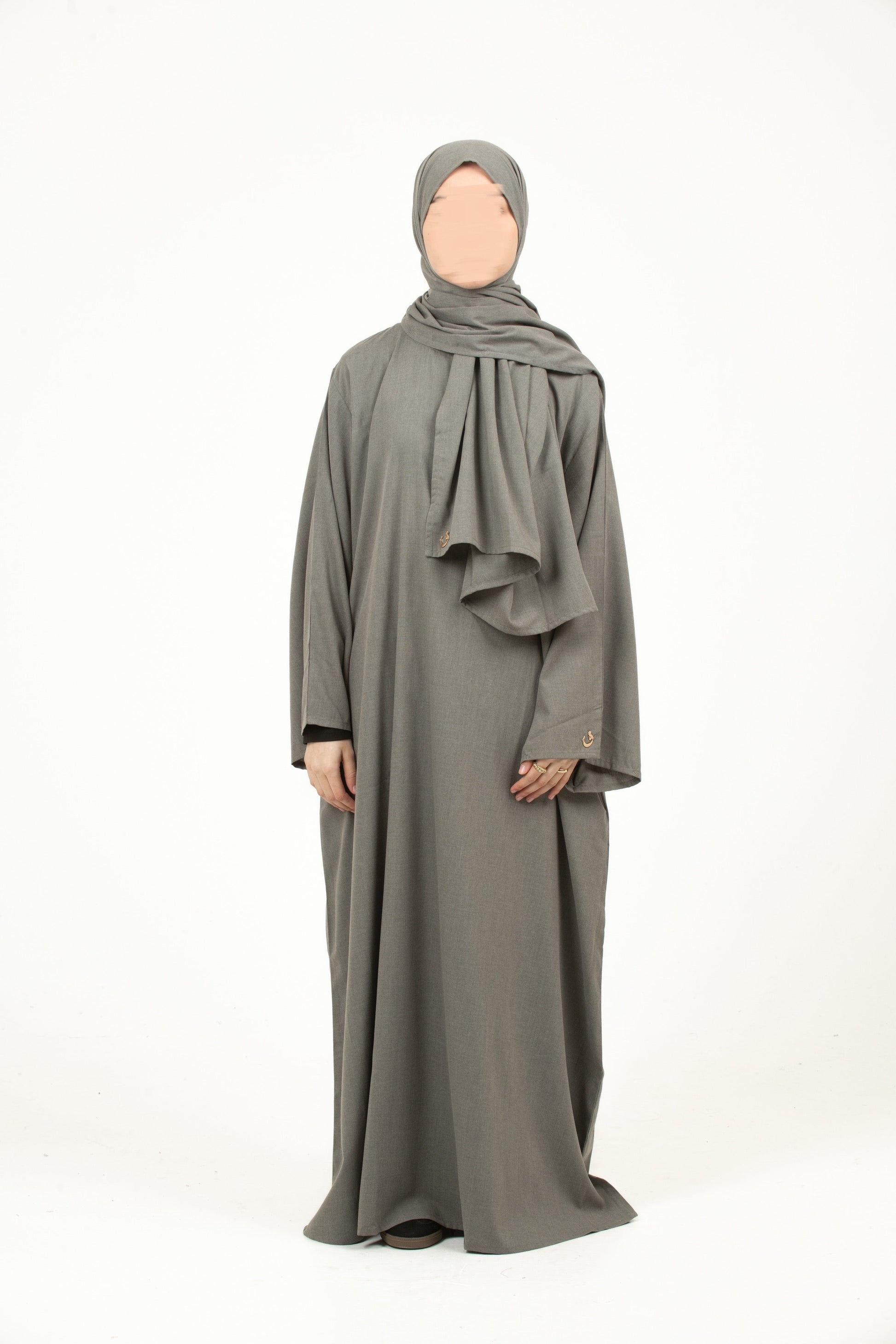 Our Earthy Collection Abaya is crafted from soft, breathable linen for a luxurious feel and modest silhouette. The oversized design ensures effortless elegance, while wide sleeves with hidden inner buttons add versatility and comfort. Subtle logo detailing on the sleeve enhances the timeless style.